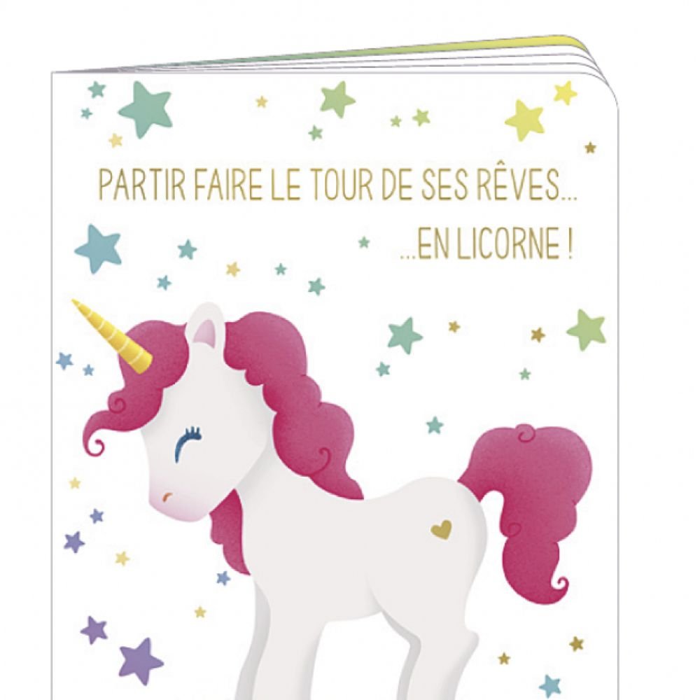 CARNET 10X15 PARTIR FAIRE LE TOUR DE SES RÊVES EN LICORNE