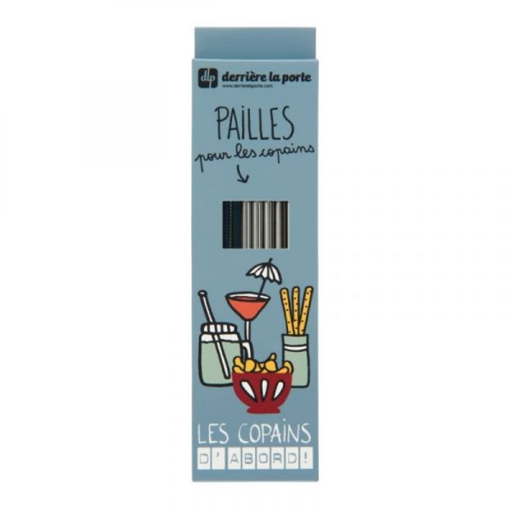 Paille (set de 10 + goupillon dans boite) METAL Les copains gris