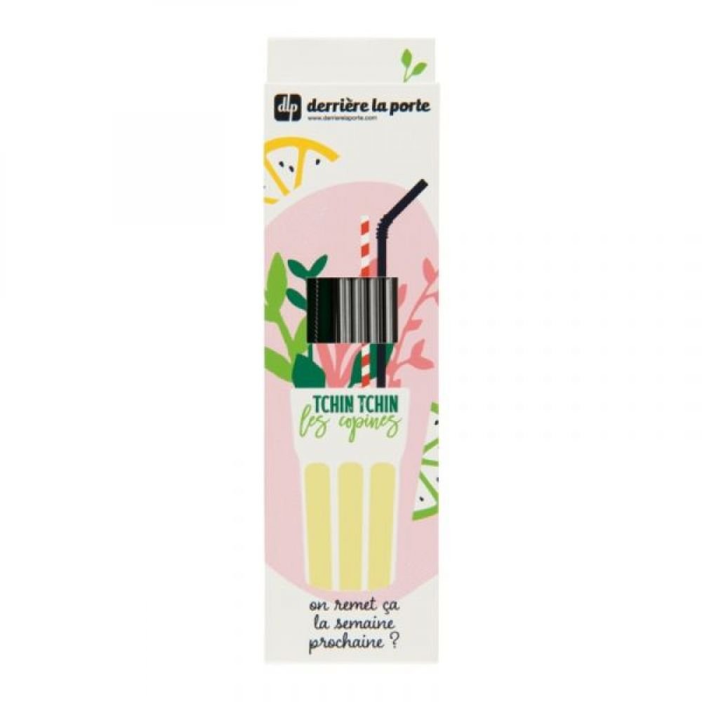 Paille (set de 10 + goupillon en boite) METAL Tchin tchin les copines